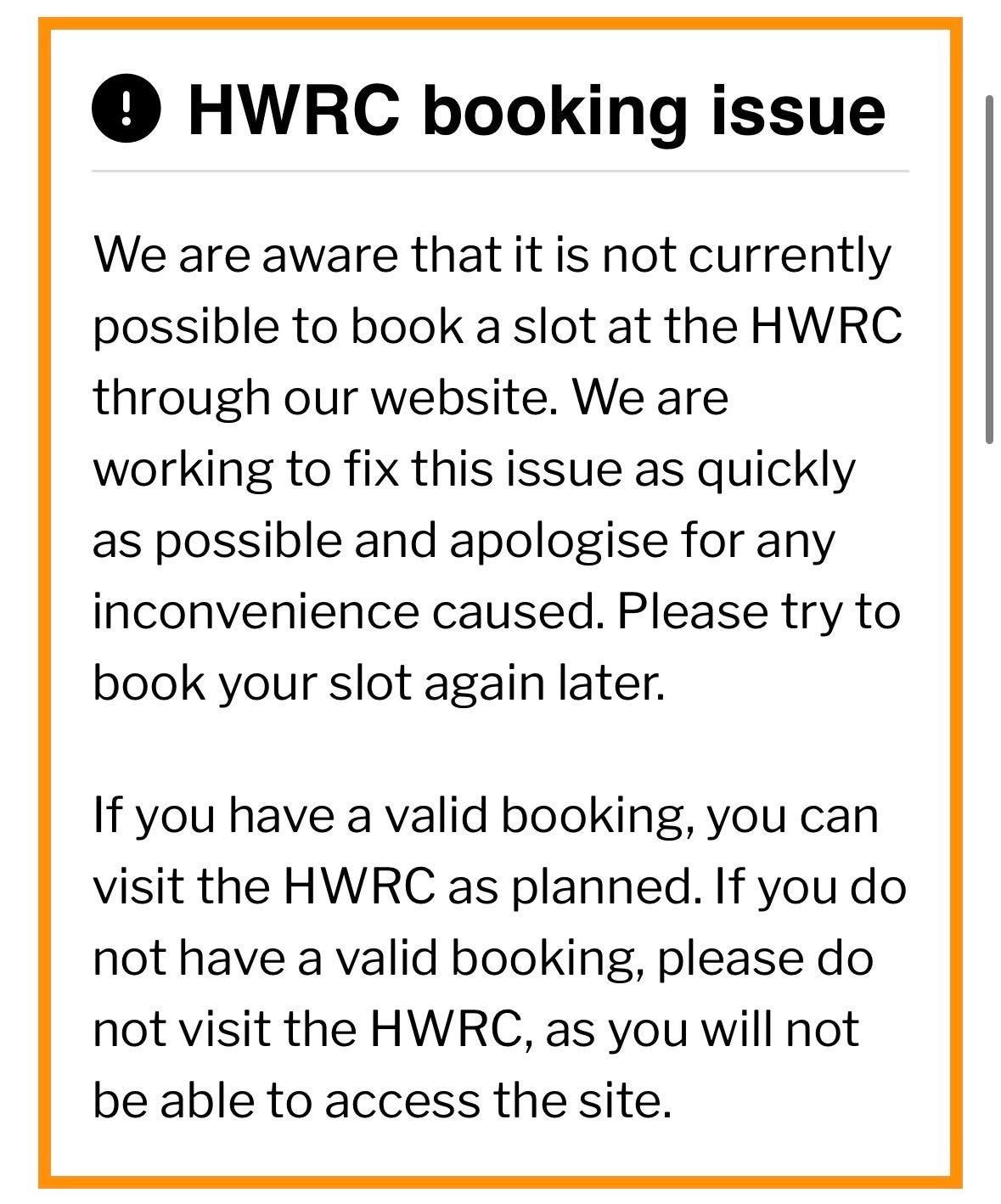⚠️ Recycling Centre Booking system offline