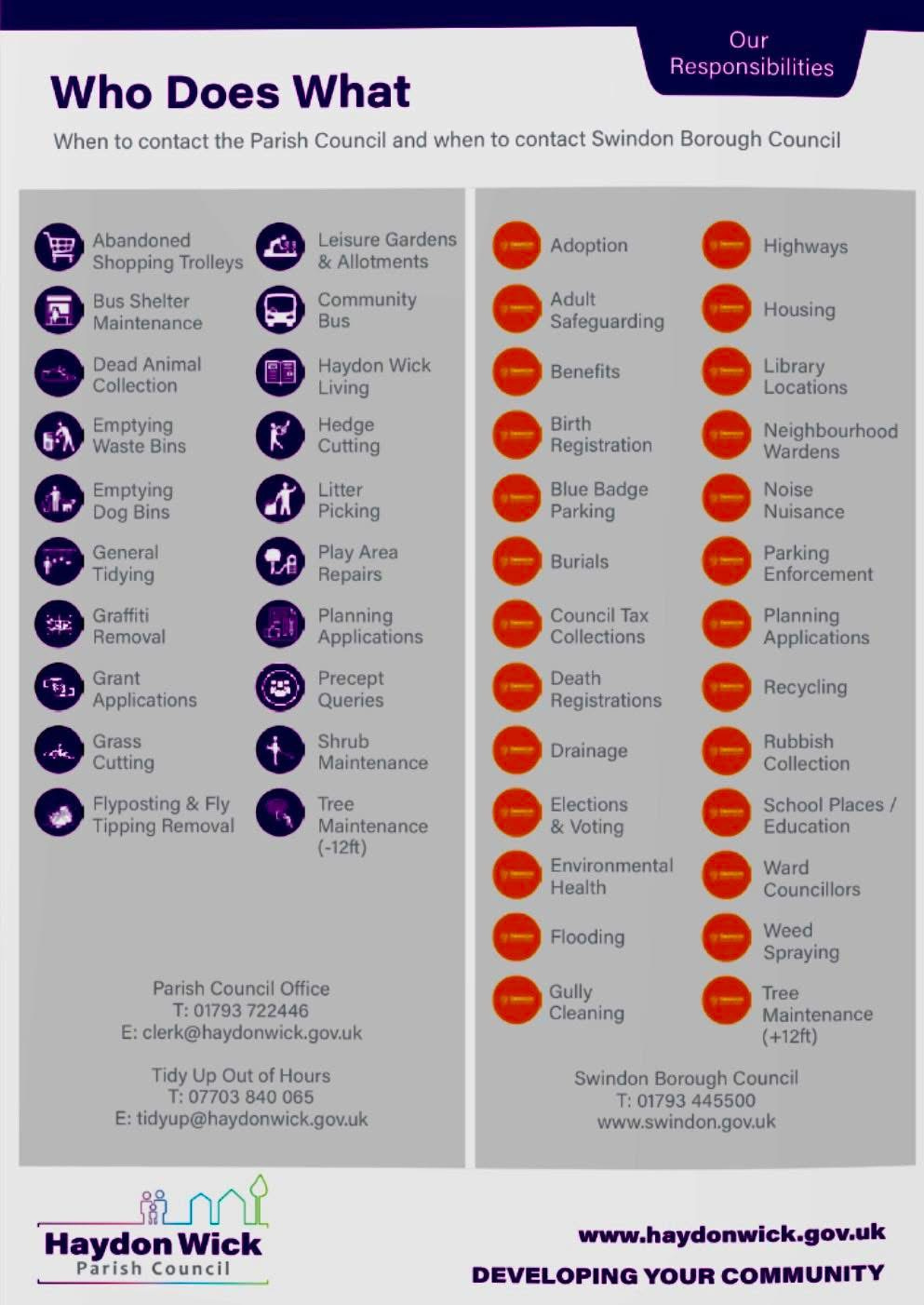 Haydon Wick Parish Council is reviewing budgets and priorities.
